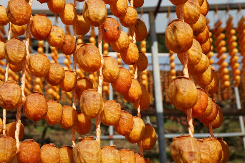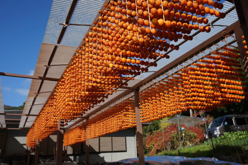 生産者の方のお話を伺うこともありましたが需要の減少、串柿の小型化、また人手不足に後継者問題と苦労があるそうで、今の代で終わりというお話を聞いたところもありました。